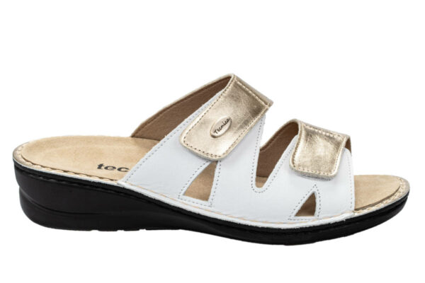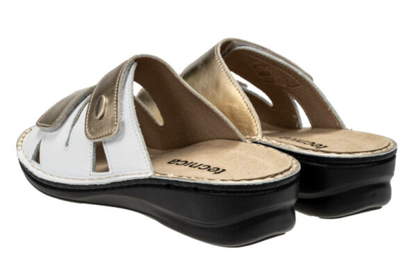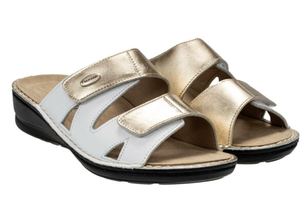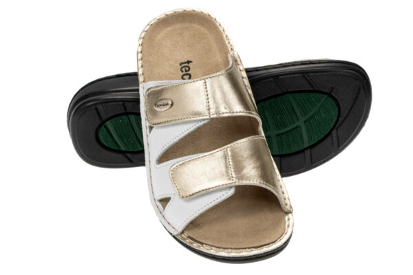 La tomaia automodellante e senza cuciture interne nelle zone di sfregamento consente di adattarsi al piede contenendo comodamente le deformità inoltre è predisposta per l’inserimento di un plantare personalizzato, la chiusura a velcro + cinturino consente di aprire la parte posteriore della tomaia e di regolare il volume interno in base alla necessità.